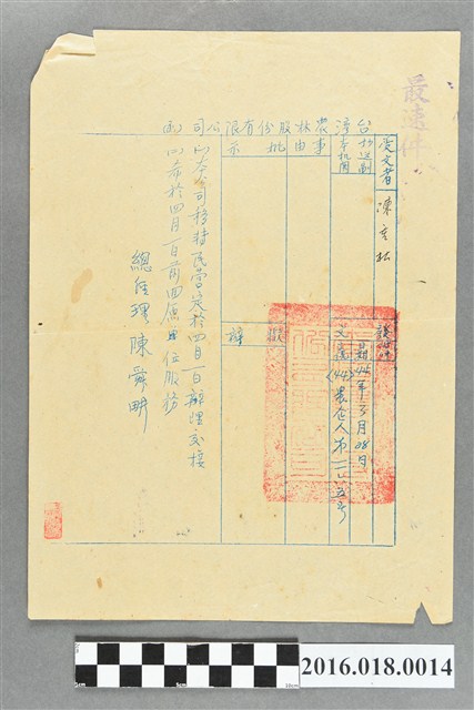 2016.018.0014 陳重松臺南農林股份有限公司(44)農企人字第1165號函
