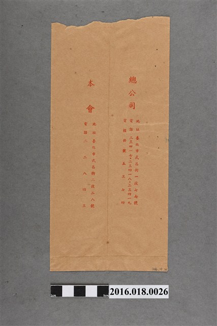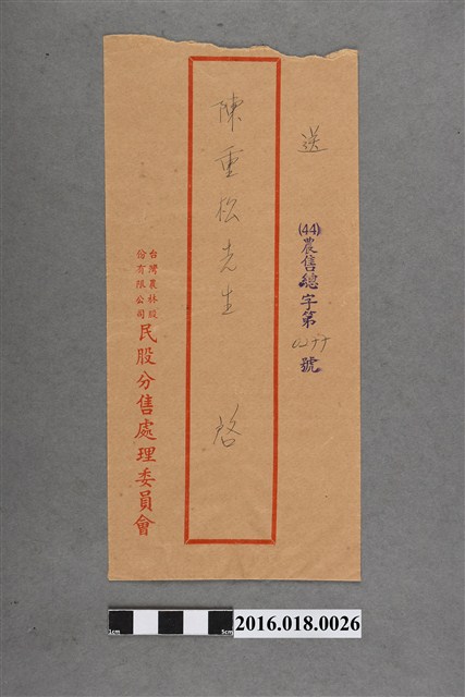 2016.018.0026 陳重松臺灣農林股份有限公司民股分售處理委員會信封