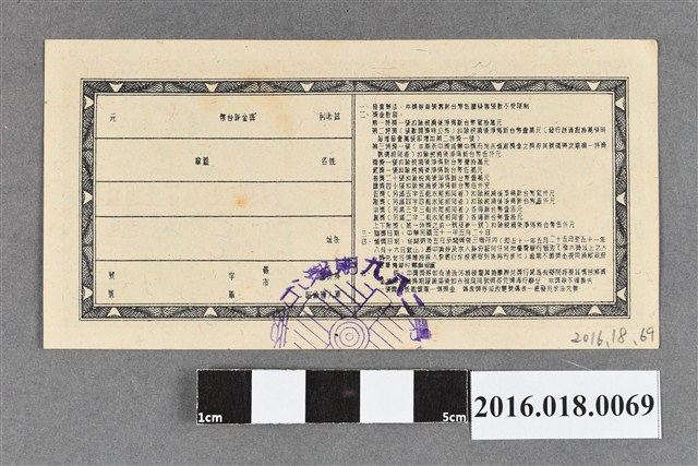 2016.018.0069 臺灣省政府委託台灣銀行發行愛國獎券289期