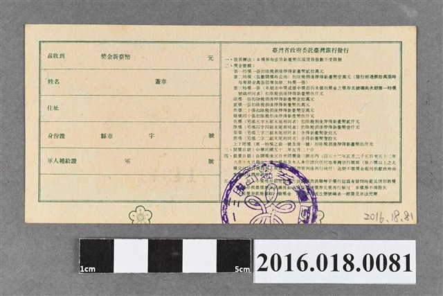臺灣省政府委託台灣銀行發行愛國獎券313期