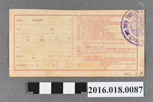 獎券、雙聯式、橫式