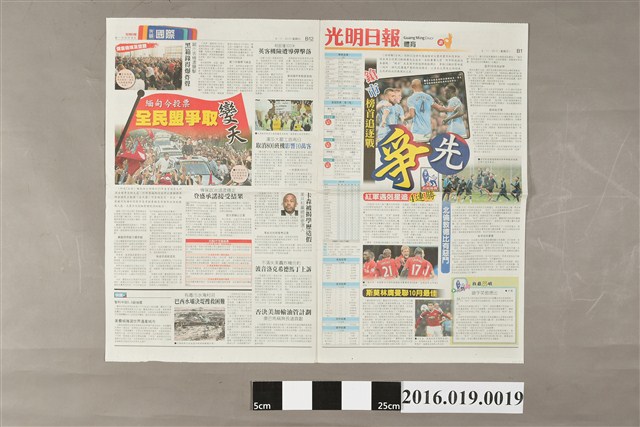 該物件為2015年11月8日光明日報B11版對馬習會之全版報導。報導內容包含張志軍對臺灣選舉的看法、外國媒體的評論、臺灣的反應。