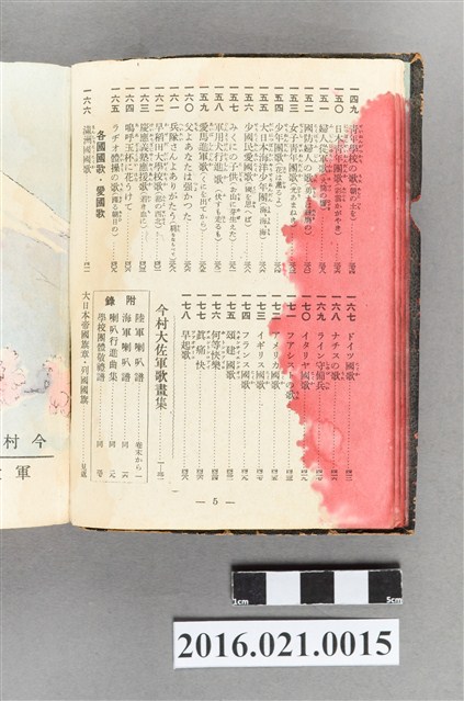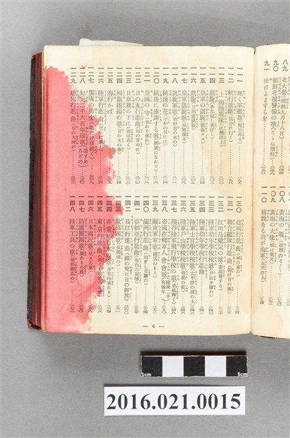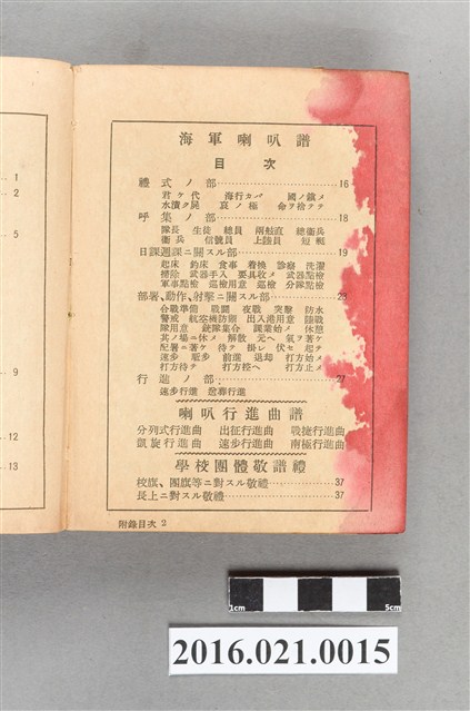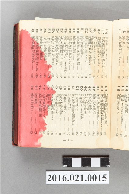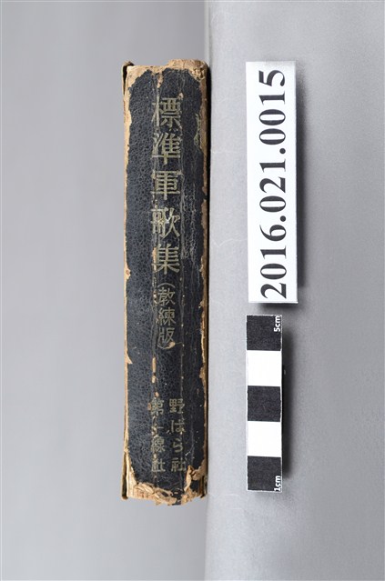 此書於昭和14年(1939)改訂發行,為日本軍歌集共178首,包括歌詞跟曲譜。這些軍歌也呈現了老一輩臺灣人關於日本的歷史記憶。
