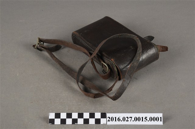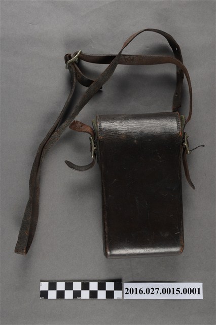 本件為柯達折疊式布朗尼2號自動書寫背印相機之皮套,深褐色皮革,上開式蓋,附青銅壓釦,皮套內裡為墨綠色絨布,蓋內以黑筆書寫「KAZENYO 台中一中」(即:柯全鏞 臺中一中)等字。