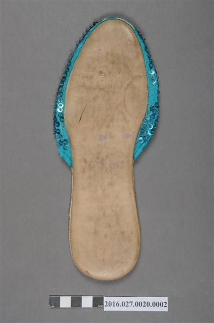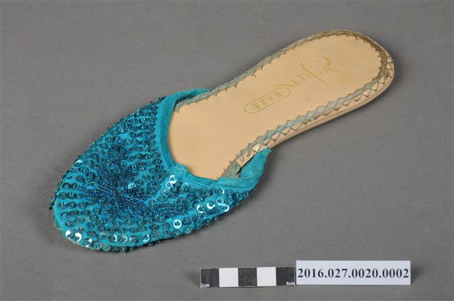 生生皮鞋製綴藍色珠花皮拖鞋右鞋