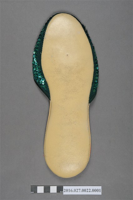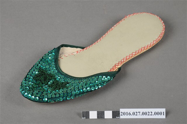 綴綠色珠花皮拖鞋右鞋