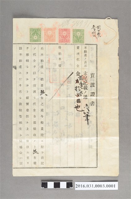 2016.031.0003 何吳氏匏與何子順賣予吳木青與吳萬壽土地買賣證書
