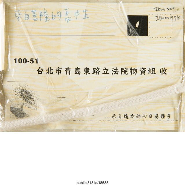 1.內容:To立院裡的各位\r\n謝謝大家在立院堅守了那麼多天,堅守那麼多天真的很辛苦,人民都知道這個服貿不能通過,現在通過了,台灣就會慢慢走上香港的路,今天已經是第10天了,即使革命無法成功,但至少我們努力過,But相信我們一定會成功的!!!!!\r\n希望馬英九可以打開耳朵,傾聽民眾的聲音\r\n感謝立院裡的各位,有你們大家,台灣才會看見明日的陽光!2.中研院原件典藏編碼:ID002093.中研院識別號:185854.中研院關係藏品-關聯:5.中研院關係藏品-整體:187096.提供者: