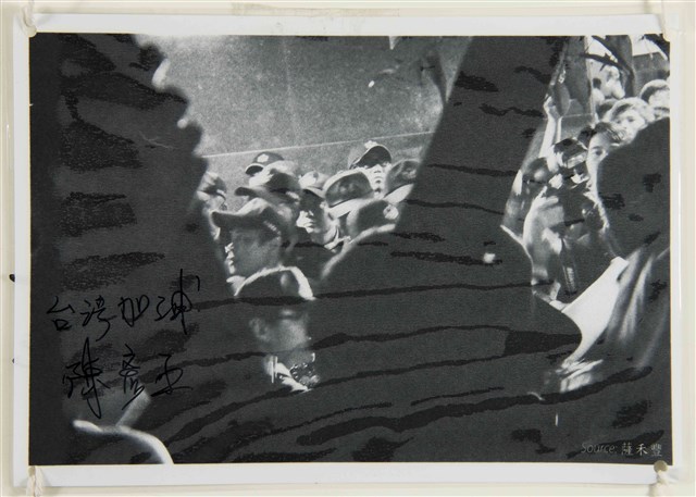 范雯亭「台灣加油」黑白照片