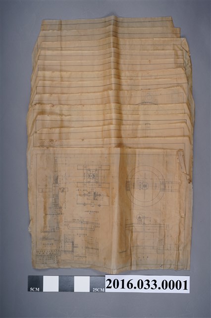 本批設計圖共13張,為北門洗滌鹽工廠的相關設備的設計圖。 應該是1952年經臺灣製鹽總廠北門鹽場請工程師袁本茲參考日治時期資料動工修復的工程設計圖。在日本人離開後,美援到來之間,見證戰後初期臺灣自力恢復農工生產的努力,資料的來歷及其背後人群揮汗努力的身影,堪稱彌足珍貴。