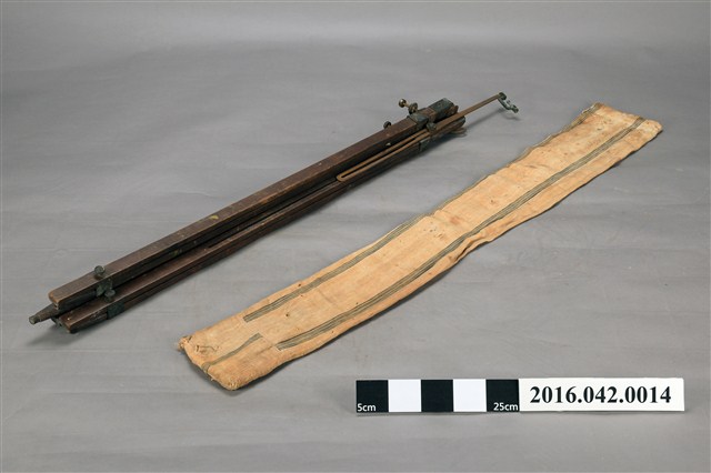 陳澄波用來裝置及保護畫架的套子,此帆布畫套造型相當樸素,上面有條紋裝飾。