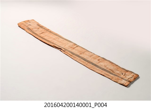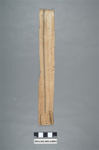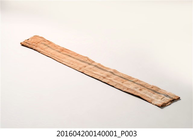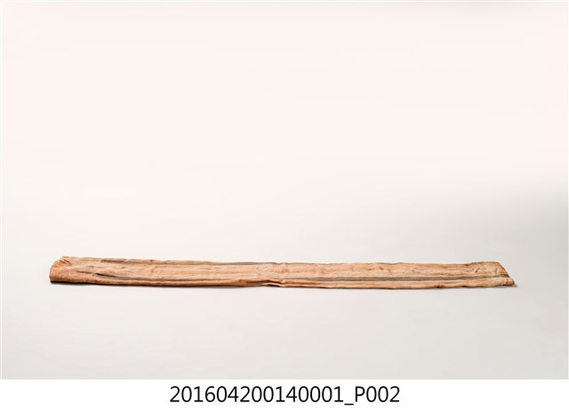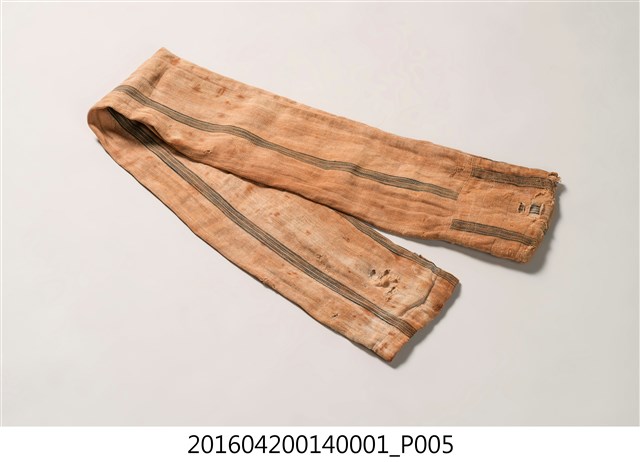 陳澄波用來裝置及保護畫架的套子,此帆布畫套造型相當樸素,上面有條紋裝飾。