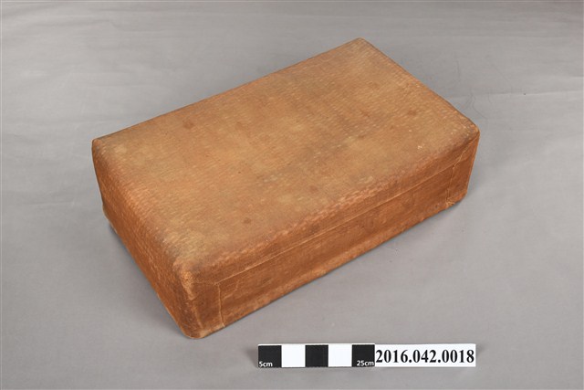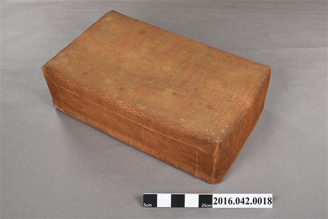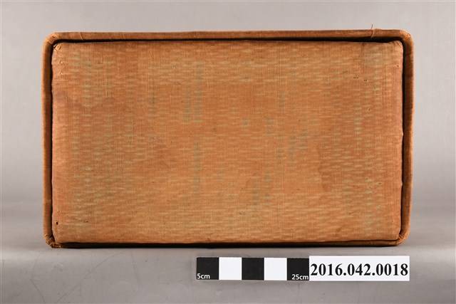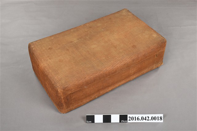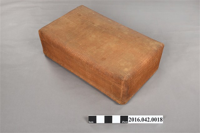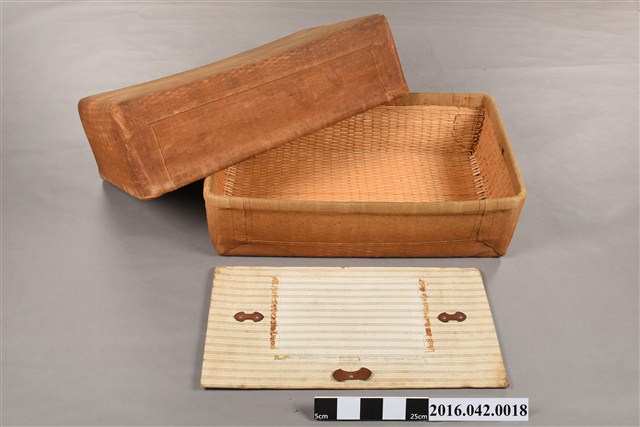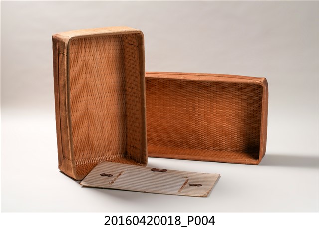 陳澄波所使用置物箱,以蘆葦所編的長形箱子,上蓋與箱體可分開,箱內用布包著的隔板。