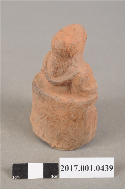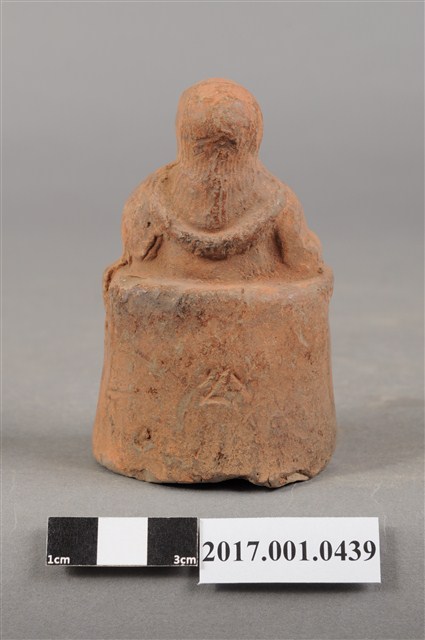 1.本件玄天上帝像為磚燒製成,保留磚燒原色不施做彩繪。尺寸嬌小,造型質樸。玄天上帝披頭散髮,前額光亮,蓄長髮於背後。其眼睛睜大,怒目而視,神態莊嚴,蓄有長髯。玄天上帝身穿長袍,端坐於圈背椅上,裝飾線條已經風化不清,左手按指訣,伸直食指,右手則斷裂不知手勢為何。雙足穿靴踏於地面,未踩龜蛇。背後臺座則刻有公字。神像中空,是為防止燒製時爆裂。