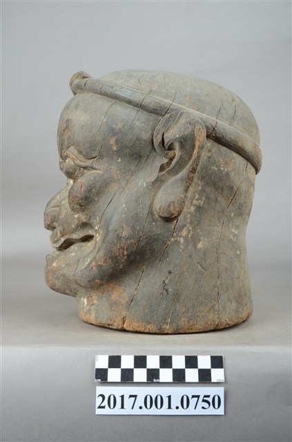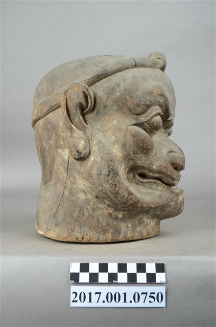 1.本件孫悟空頭像為木雕,表面粧佛已經褪去,應為大型神像的頭部。孫悟空頭束金箍,臉部五官深邃,雙眼大如銅鈴,炯炯有神,臉部肌肉表現生動,嘴巴微張,呈現威武的神情。