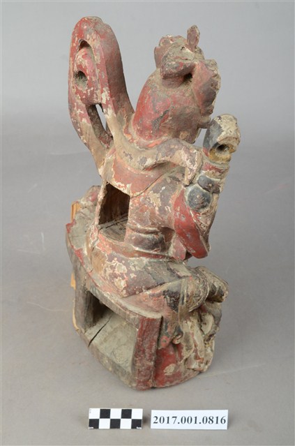 2.楊泗將軍為湖南地區的水神,能護佑水路航行平安,後來逐漸隨著移民傳播到長江流域。其來歷眾說紛紜,一說七歲習法,斬殺洞庭湖裡的蛟龍後昇天成神;另一說是紀念南宋時期起義的楊么,被岳飛平定處死之後,地方人士以楊泗避諱暗地祭祀。楊泗將軍為知名的水神,造像特色為武將,身旁有龍。(富俐崴文化事業有限公司/謝宗榮計畫主持)