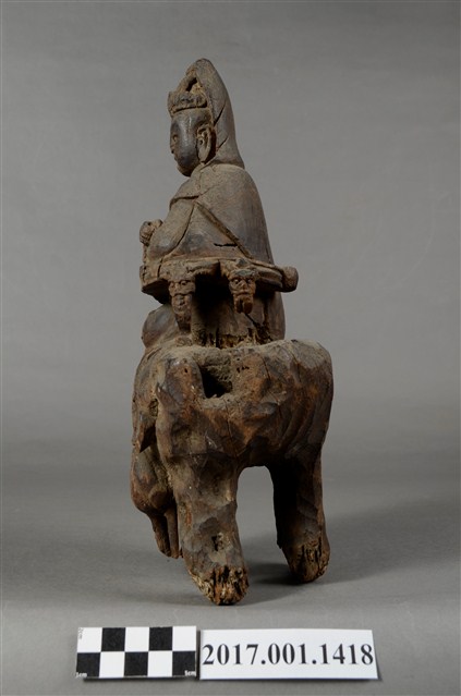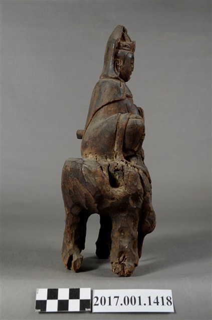 2.觀世音菩薩簡稱觀音菩薩,菩薩即「菩提薩埵」之簡稱,亦即「覺悟之有情眾生」。觀世音菩薩為漢傳佛教之四大菩薩之一,尊稱大悲觀世音菩薩,臺灣民間俗稱觀音佛祖、觀音媽,為民間普遍供奉的佛教菩薩。閩臺地區觀世音菩薩信仰興盛,有「家家觀世音、戶戶阿彌陀」之說,觀世音菩薩也成為普遍的家神之主。傳世觀音像除準提、千手觀音之外,一般有立姿、半跏趺坐、跏趺坐等三種主要姿態,立姿多為家宅供奉,半跏趺坐多為同祀之菩薩,而做為佛寺主尊者則多作結跏趺坐姿態。(富俐崴文化事業有限公司/謝宗榮計畫主持)