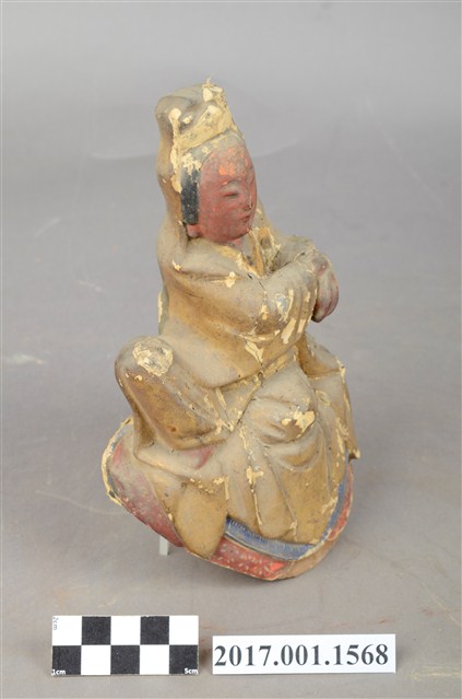 2.觀世音菩薩簡稱觀音菩薩,菩薩即「菩提薩埵」之簡稱,亦即「覺悟之有情眾生」。觀世音菩薩為漢傳佛教之四大菩薩之一,尊稱大悲觀世音菩薩,臺灣民間俗稱觀音佛祖、觀音媽,為民間普遍供奉的佛教菩薩。閩臺地區觀世音菩薩信仰興盛,有「家家觀世音、戶戶阿彌陀」之說,觀世音菩薩也成為普遍的家神之主。傳世觀音像除準提、千手觀音之外,一般有立姿、半跏趺坐、跏趺坐等三種主要姿態,立姿多為家宅供奉,半跏趺坐多為同祀之菩薩,而做為佛寺主尊者則多作結跏趺坐姿態。(富俐崴文化事業有限公司/謝宗榮計畫主持)