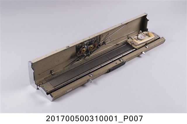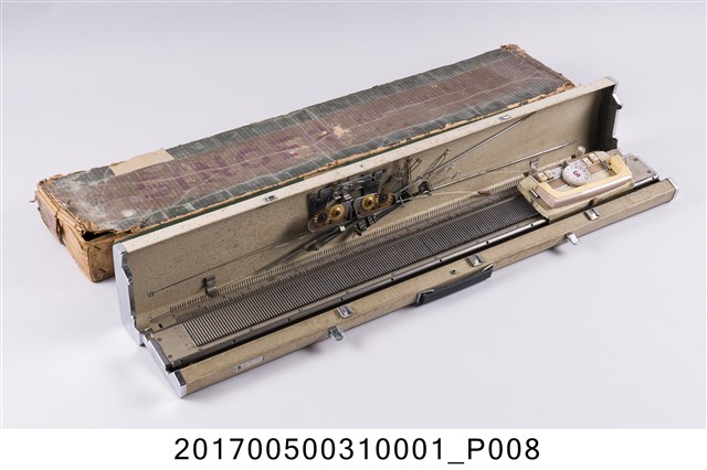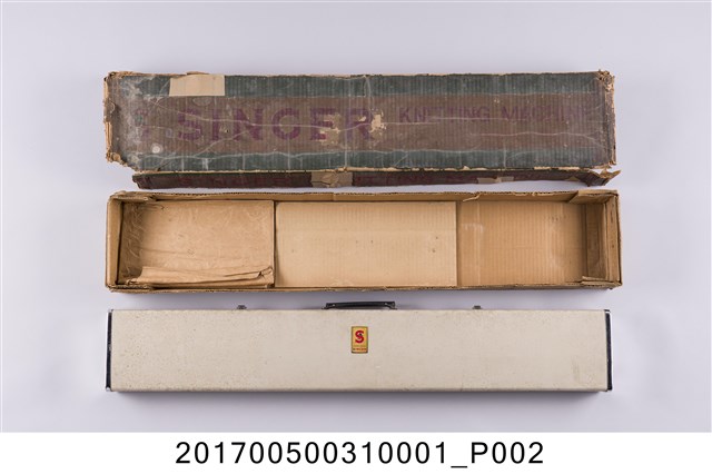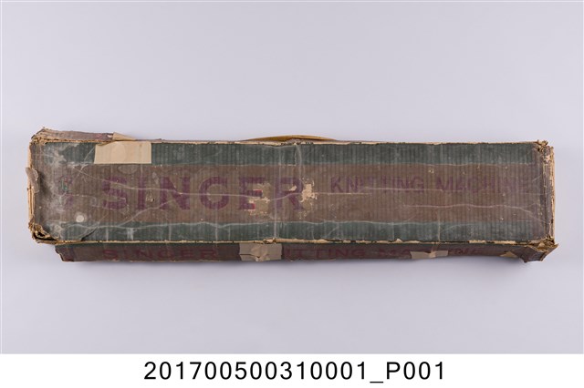 1.勝家公司(THE SINGER COMPANY)製造的勝家牌(Singer)針織機,款式model 555,機號:326840,又稱手搖機(手編機,Hand knitting machine),為家用型的編織機,可編毛線、棉紗。
