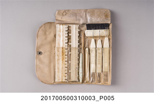1.勝家公司(THE SINGER COMPANY)製造的勝家牌(Singer)針織機,款式model 555,機號:326840,又稱手搖機(手編機,Hand knitting machine),為家用型的編織機,可編毛線、棉紗。