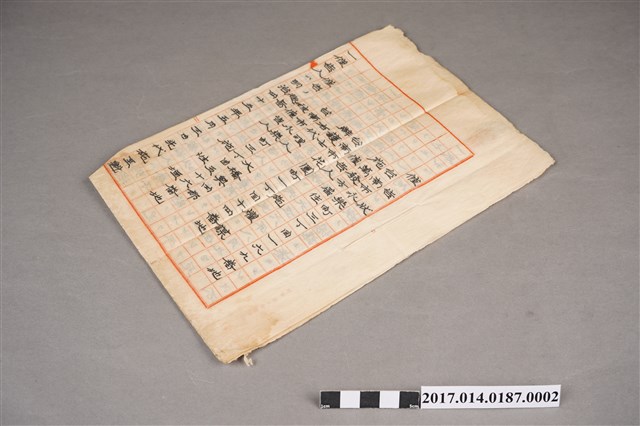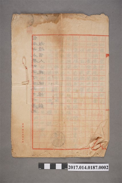 1. 本件為昭和6年9月19日律師大橋與四郎代理委託人施耀謀寄給施性垣的存證信函。紅色方格稿紙手書日文,對折後側邊以紙質綁帶穿孔裝訂成薄冊,共計20頁。信函每頁蓋有「辯護士大橋與四郎印」方形朱印及臺南郵便局郵戳「臺南 6.9.19 后4-8」之騎縫章,信紙文字末後加蓋藍色郵局存證信函證明章:「本郵便物ハ昭和6年9月19日第2號 書留內容證明郵便トシテ差出シタルコトヲ證明ス 臺南郵便局」。。