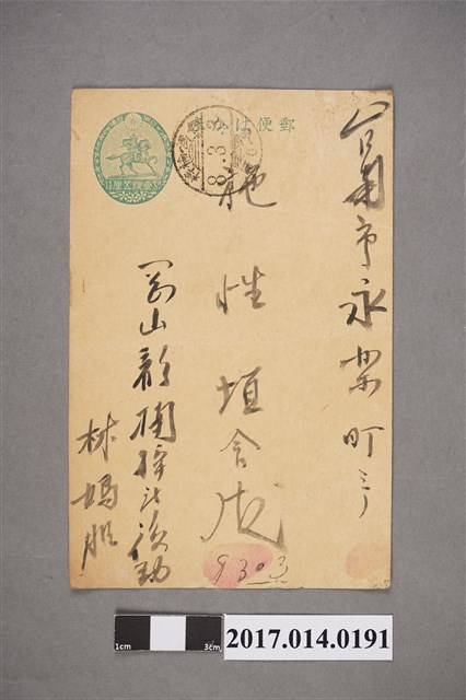 2017.014.0191 昭和8年3月3日林媽胆致施性垣明信片