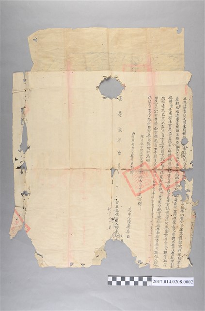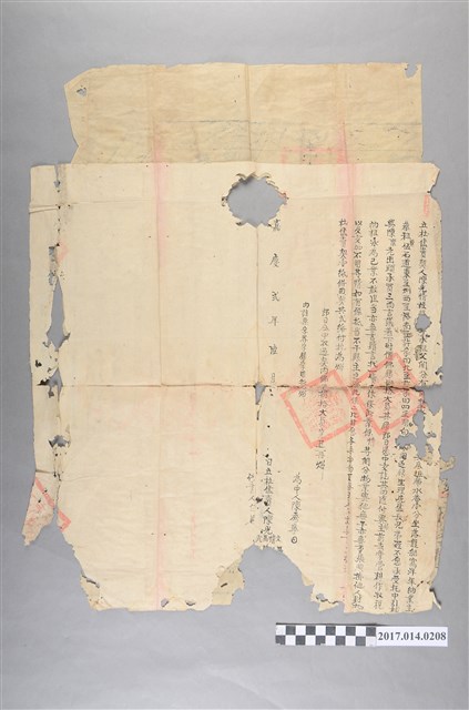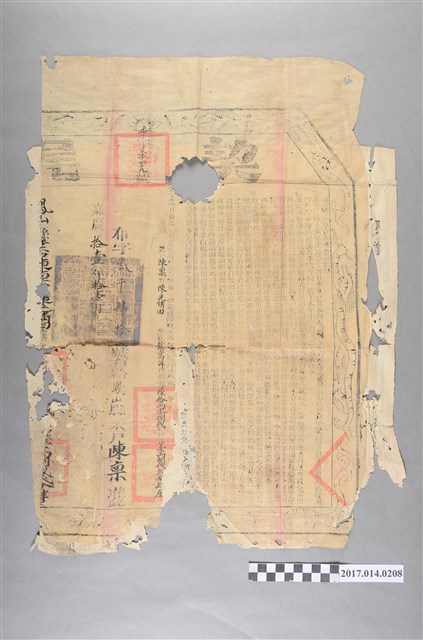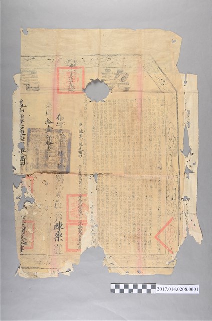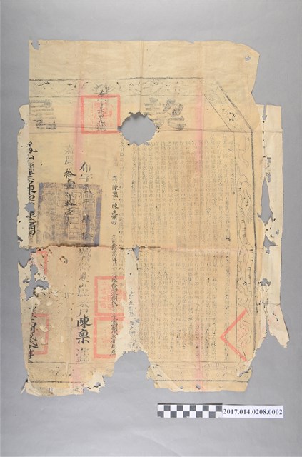2017.014.0208 嘉慶2年陳光情叔姪四人立杜儘賣契字契頭及嘉慶11年鳳山業戶陳廩契尾