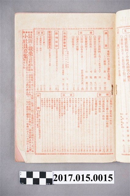 本物件為大正十四年十月發行的蠶業新報,蠶業新報內介紹:口繪、社說、論說、?英、講義、經?、調查、雜錄、科學界新音、世說絹?、統計、文苑、新刊批評、新發明農蠶器具、問答、雜報,介紹各種蠶業動態與產業新知,。蠶種家の職責として為きねばならね第一步/小胞子蟲學の現狀 工藤六三郎/夏秋蠶不作の原因關する研究 大?平三郎/新瀉式接木法 江木良之?/桑葉の水分ご含窒素量ごの關係 中根信?/微粒子の染色液及胞子被?に就て 石川金太郎/桑園改良施設の現狀?石?/人造絹絲の發達と蠶絲業の前途 加賀山??/桑仕立力就/摘葉桑苗簡易鑑別法 關田九平/桑葉