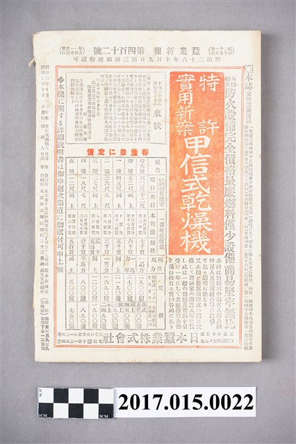 2017.015.0022 蠶業新報社出版《蠶業新報》第412號
