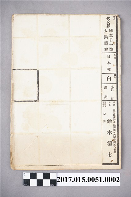 而此書刊也附有一份蠶卵,是黏在一份方格的紀錄表單上頭,應為當時試驗時所留存下來的。