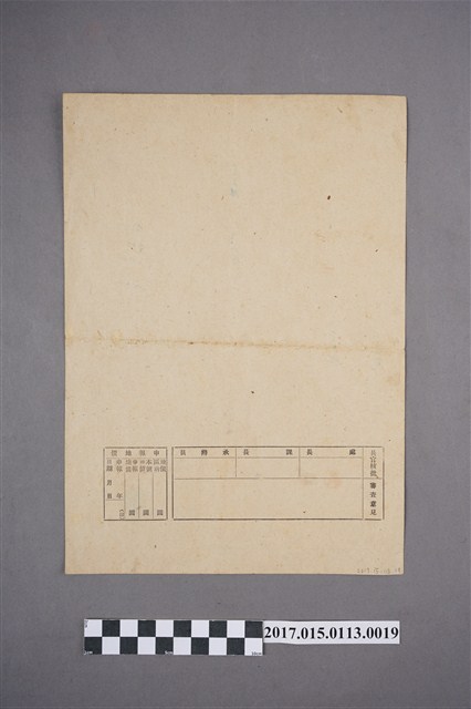 此份文物為民國三十五年時的「台灣省土地關係人繳驗憑證申報書」,上頭有土地標示「內埔」及第號十四之五與面積,而所有權人為李文祥,生為高雄縣人,職業為務農,居住於旗山區內門鄉內門村十二號。申報人同為所有權人為李文祥,證明人則為內門鄉鄉長。台灣歷史上首次導入近代西方土地登記法制,主要是依據依台灣土地登記規則與準用日本不動產登記法及相關行政命令;因而構成台灣之西方式土地登記法規範。當時係採權利登記制(登記生效主義)與契據登記制(登記對抗主義)兩者並行。嗣因日本採同化政策施行於殖民地,於是在法制上大部分適用與日本相