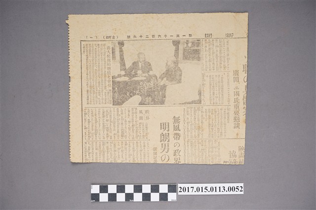 昭和10年7月12日之臺灣新聞一份,臺灣新聞前身為臺中每日新聞,1903年改組改稱,標題:昭和三大疑獄)の合併上告省開か、勞金關係の他に堆積の感情問題、蔣大使真崎總監と會見。