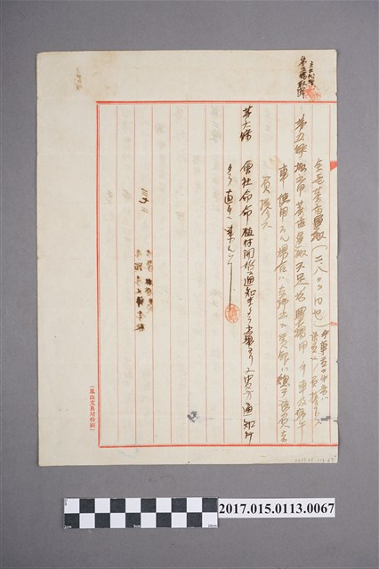 此物件為日治時期契約書,於昭和七年簽訂,一方為台灣製糖株式會社,一方為住於內埔三七二番地的李路、李文祥、李桹、李學、林登茷五人,契約內容大略為甘蔗採收、運送的相互規定,上述五人需運送一定數量至製糖會社,製糖會社需供給此五人售銀。