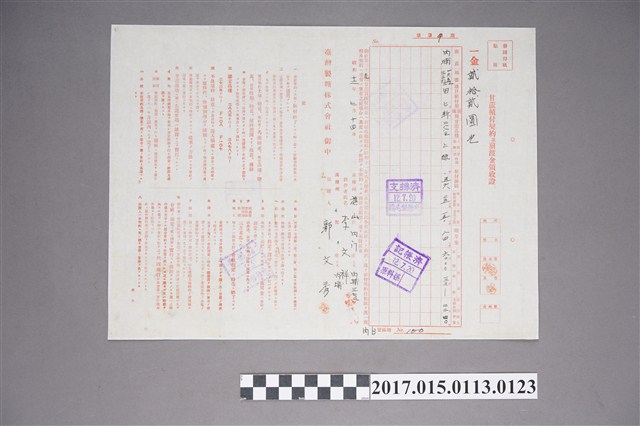 2017.015.0113.0123 李文祥甘蔗植付契約並前渡金領收證