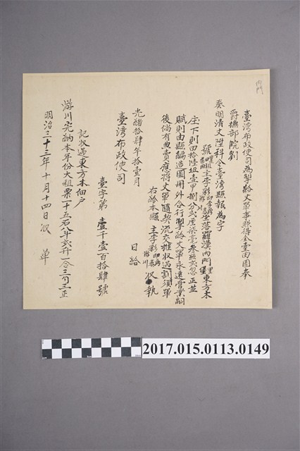 2017.015.0113.0149 台灣布政使司為掣給丈單事