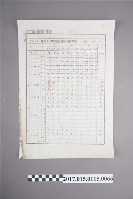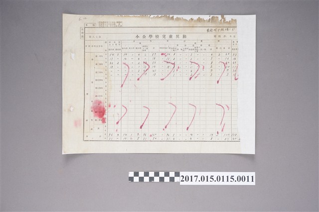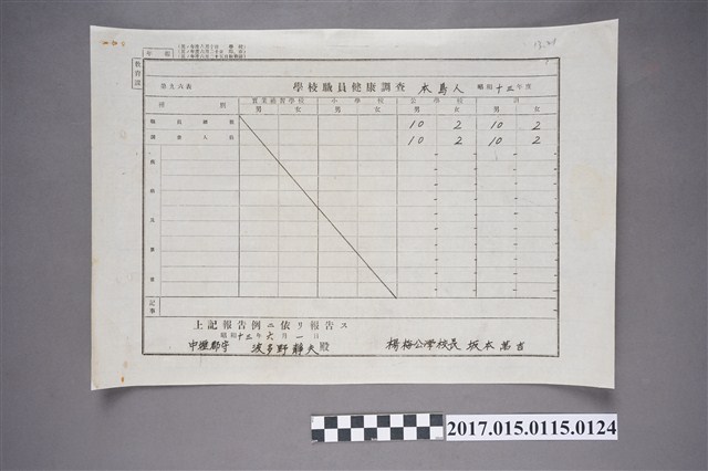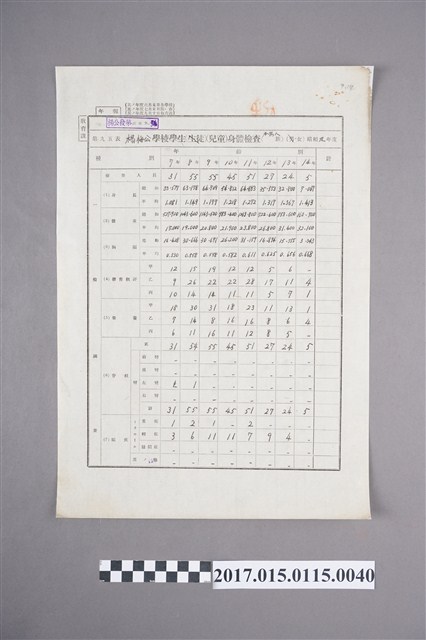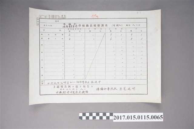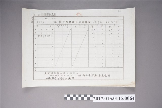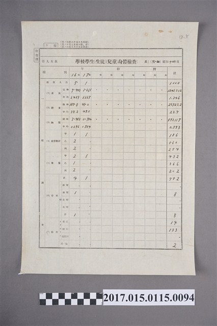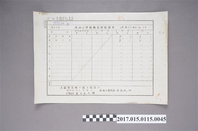 2017.015.0115.0092 楊梅公學校身體檢查統記表格