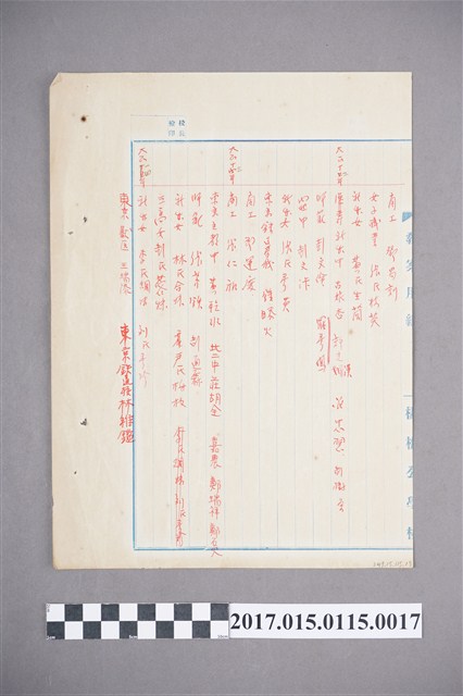 2017.015.0115.0027 楊梅公學校身體檢查單名票送付目錄