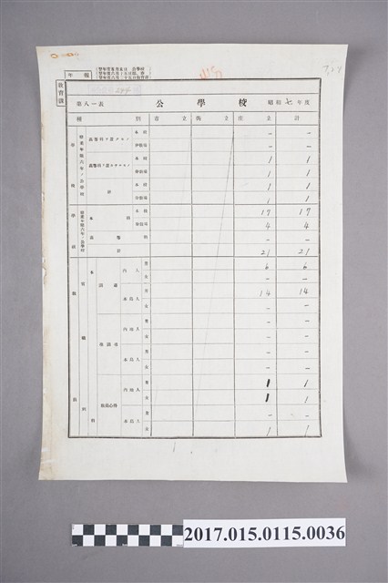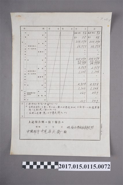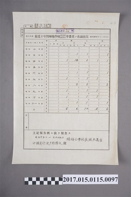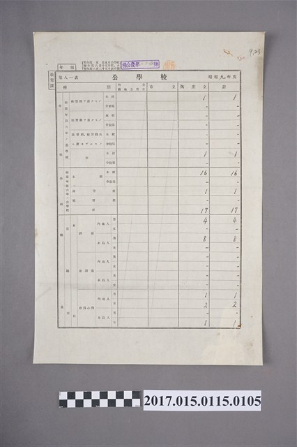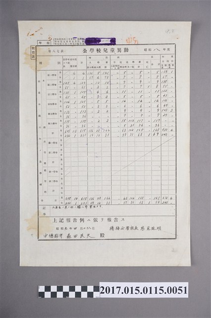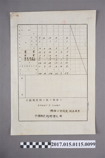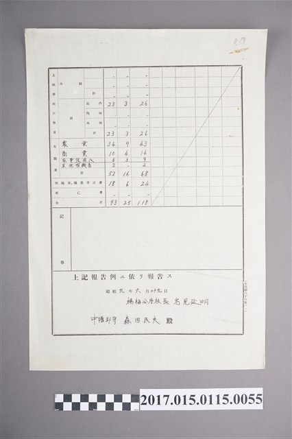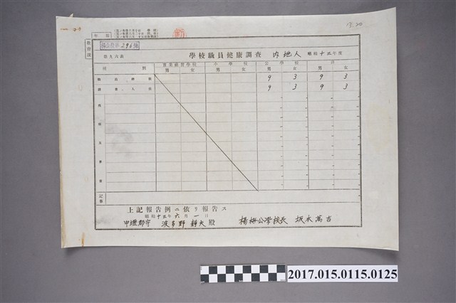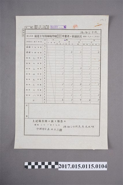 2017.015.0115.0044 楊梅公學校學事統計資料回報