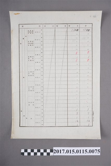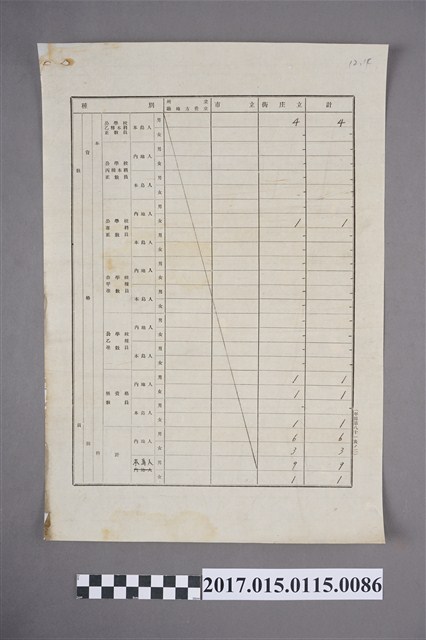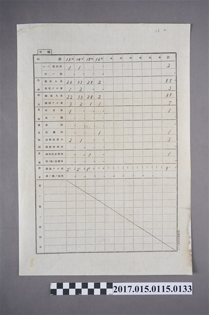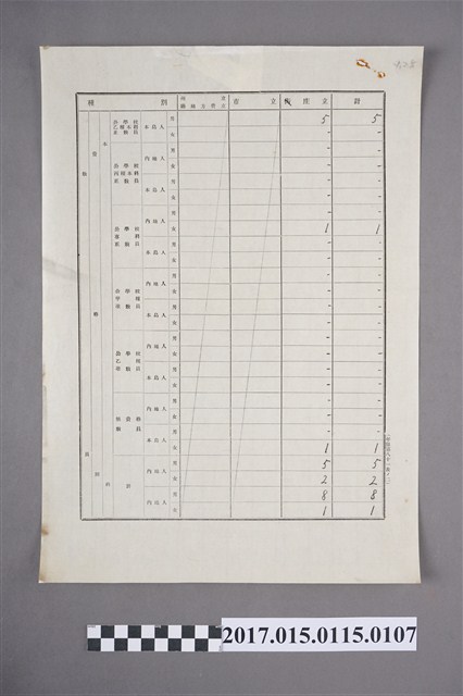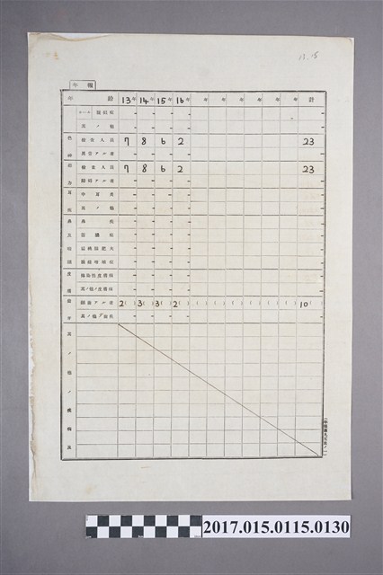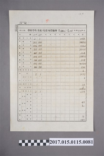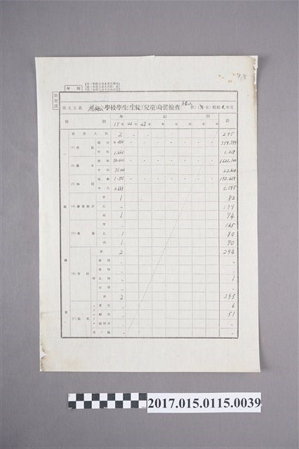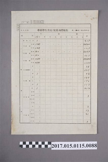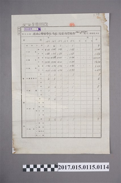 2017.015.0115.0091 楊梅公學校身體檢查統記表格