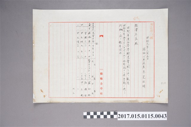 2017.015.0115 新竹中壢郡楊梅公學校資料
