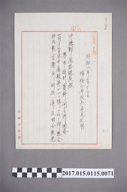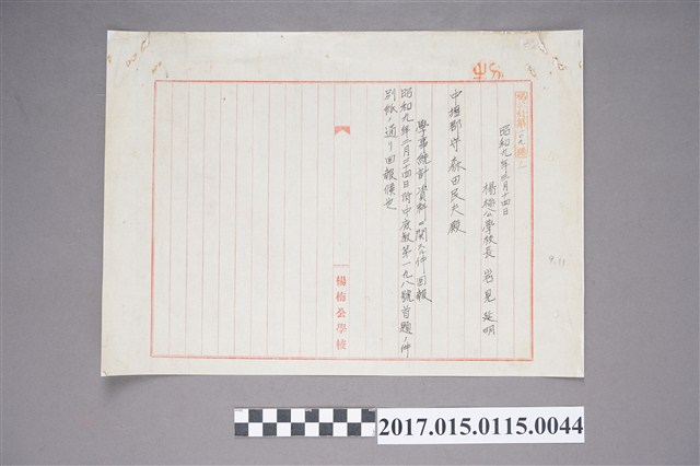 2017.015.0115.0071 楊梅公學校長與中壢郡庶務課長之便簽