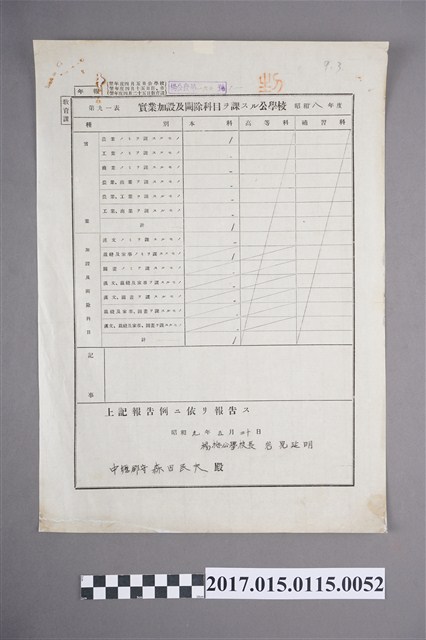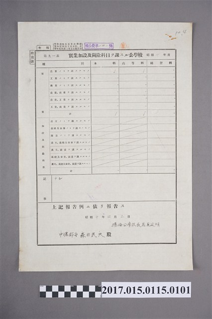 2017.015.0115.0101 楊梅公學校實業加設及闕除科目ラ課スル公學校