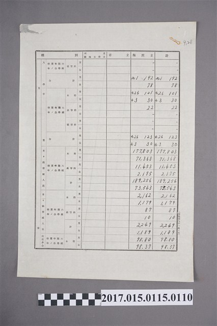 2017.015.0115.0110 楊梅公學校公學校統計表
