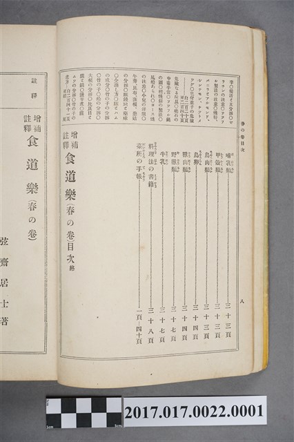 2017.017.0022.0001 村井弦齋著《增補食道樂》春之卷