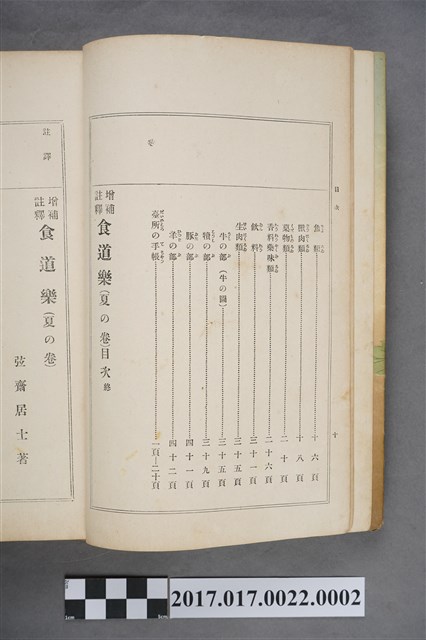 2017.017.0022.0002 村井弦齋著《增補食道樂》夏之卷