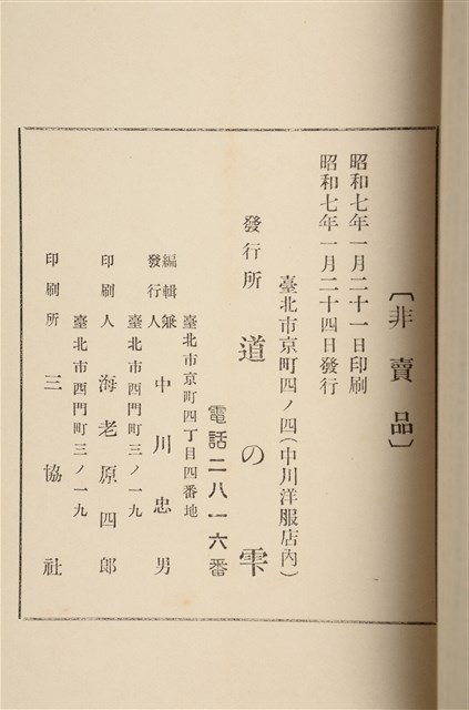 2017.017.0034 昭和7年5月25日臺北市發行《道之雫》第6號