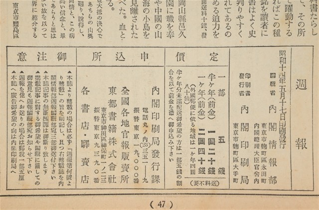 2017.017.0054 昭和14年5月17日發行內閣情報部編《週報》第135號