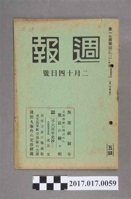 2017.017.0059 昭和15年2月14日發行內閣情報部編《週報》第174號