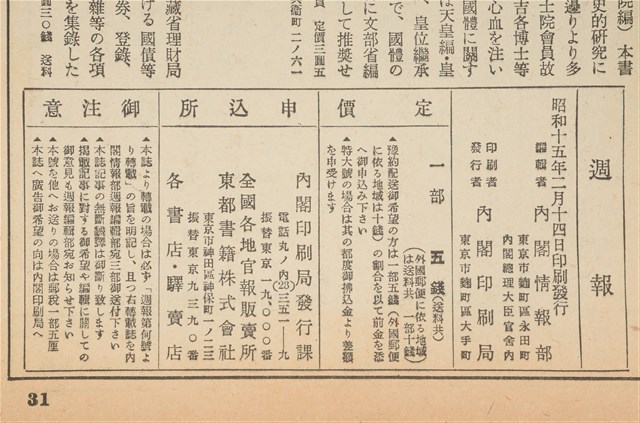 昭和15年2月14日發行內閣情報部編《週報》第174號