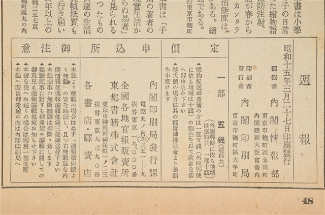 昭和15年3月27日發行內閣情報部編《週報》第180號